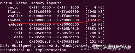 PAGE_OFFSET:对于内核空间,给定一个虚拟地址x,其物理地址为x-PAGE_OFFSET。1、感觉这个也只是针对线性映射区吧。2、那这个不说明内核虚拟地址起始位置为PAGE_OFFSET=0x80000000(2G)??。那4G地址空间就是2:2进行划分的