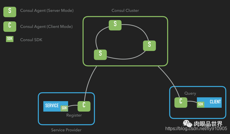 Consul本质上属于应用外的注册方式,但可以通过SDK简化注册流程。而服务发现恰好相反,默认依赖于SDK,但可以通过Consul Template(下文会提到)去除SDK依赖。