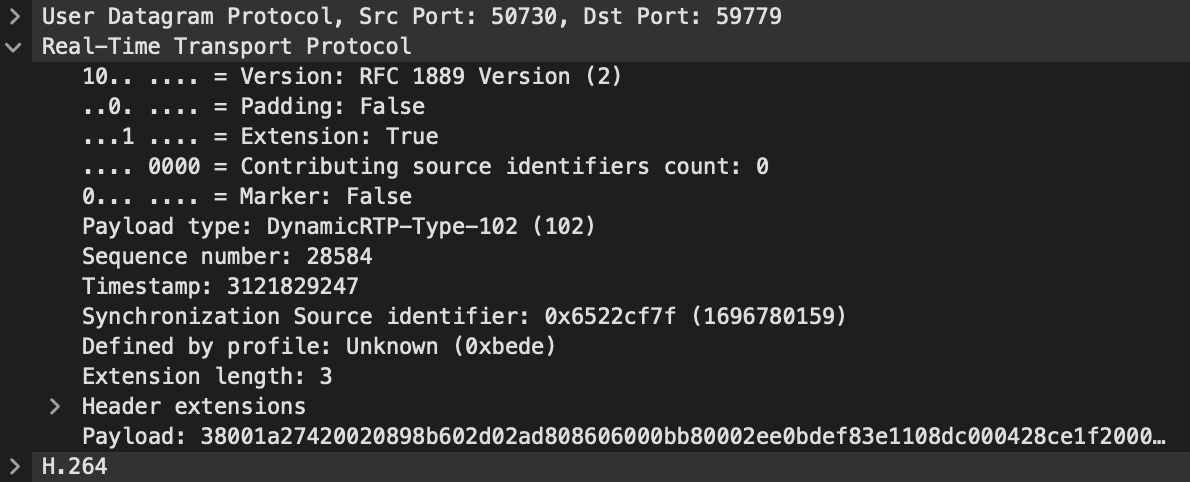 注意我们需要观察 RTP 包的荷载内容,所以要关掉 SRTP ,只用 RTP 来传输