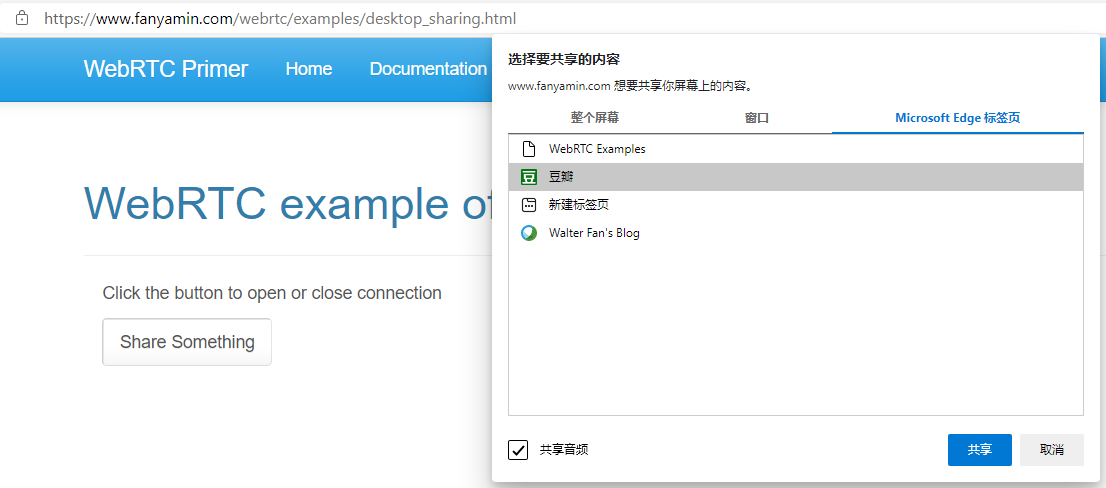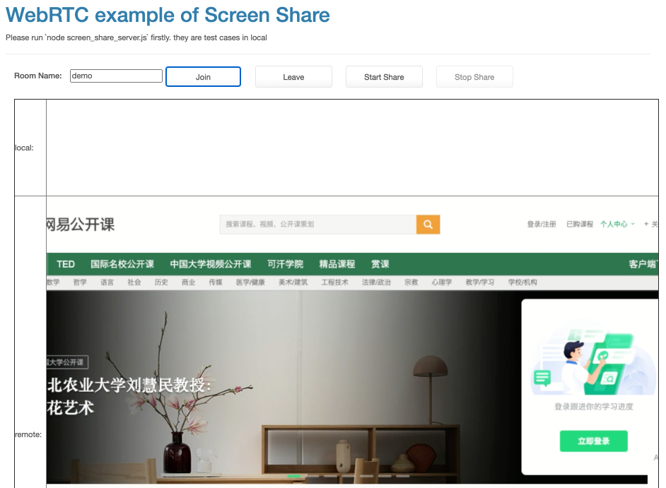 - https://github.com/walterfan/webrtc_primer/blob/main/examples/screen_share_demo.html