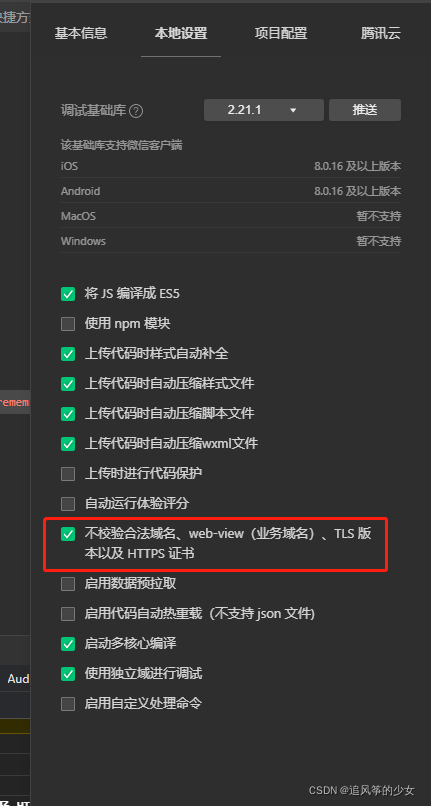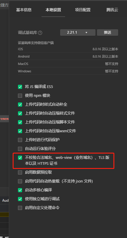 (注:若地址未配置成功或有其他问题,则可通过点击详情>本地设置中的不校验地址先测试)