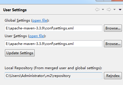User Settings:E:\apache-maven-3.3.9\conf\settings.xml