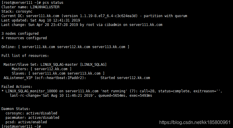 Last change: Sun Apr 28 23:47:28 2019 by root via cibadmin on server111.kk.com