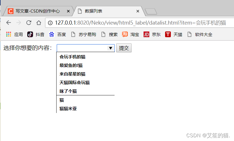 <option value="会玩手机的猫"></option>