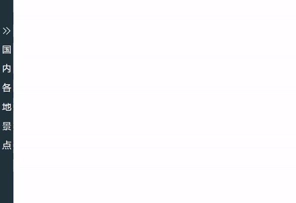 这是一款基于纯JavaScript实现的侧边栏菜单,因为整个菜单并没有使用jQuery等第三方插件,因此菜单比较轻量级的。这款JS侧边栏菜单的特点是点击按钮可以展开和隐藏,并且在隐藏时自动显示提示文字,展开后又隐藏提示文字,很好地做到了自适应效果。