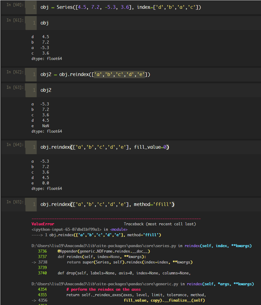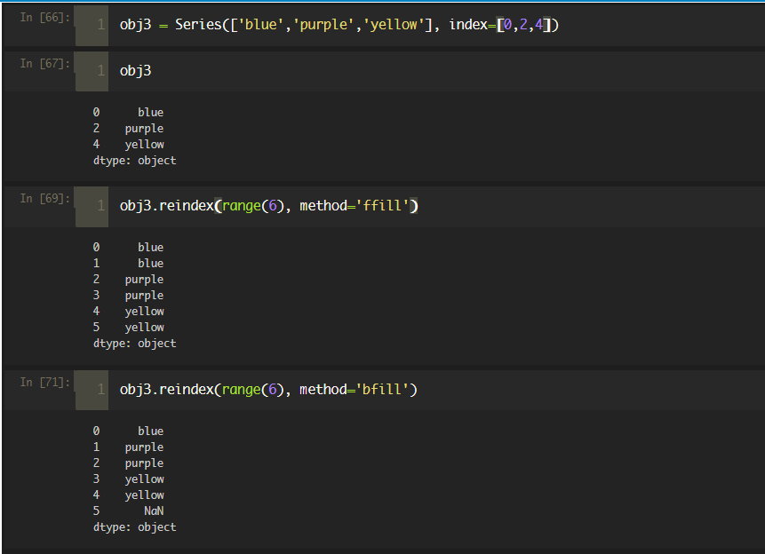 2.2) 通过method参数,进行插值处理(注意:原Series的index需为单调递增或者单调递减,否则无法进行差值处理,通常用于时间序列)