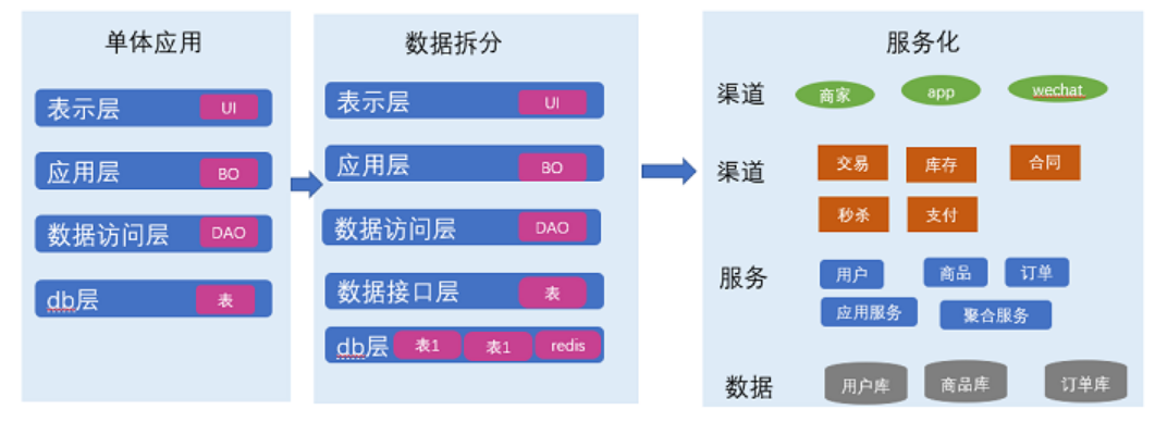 架构演进路程:单体应用→分布式应用服务化→微服务