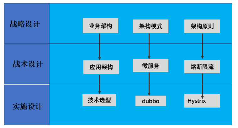 业务架构是战略,应用架构是战术,技术架构是装备。其中应用架构承上启下,一方面承接业务架构的落地,另一方面影响技术选型。