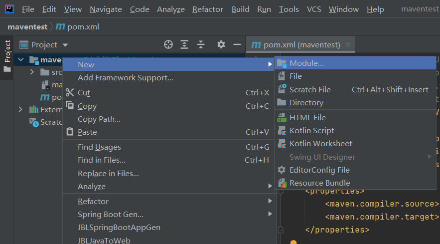 2、模块a继承maventest
