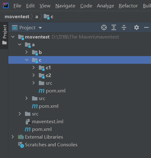 这样a就会在maventest文件夹的下级目录,也能调用maventest的内容。工程结构(左上)会如图显示:
