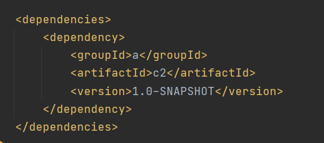 若想要c1依赖c2,则要在c1的pom中加入<dependency>标签