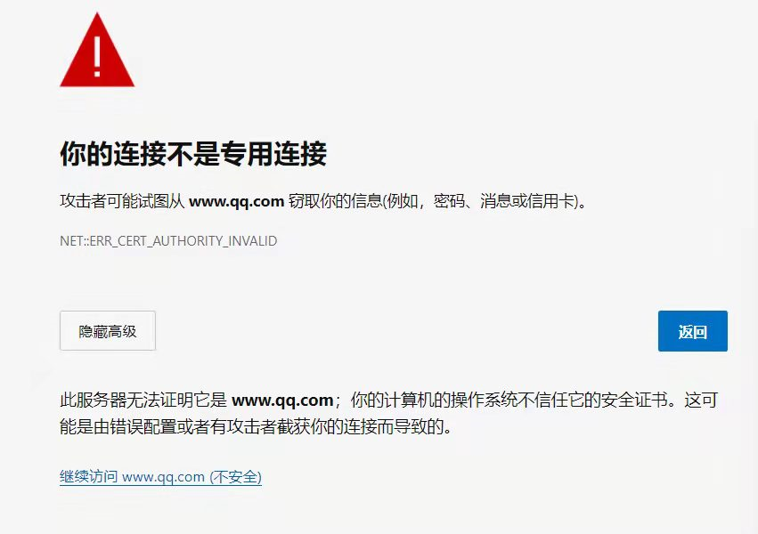 像网页这种情况还好,点击继续访问就行。但同时QQ和腾讯会议等软件也出现了问题,在使用某些功能时界面就会一片空白,比如二维码显示不出来。网上查询了各种解决方法,重置浏览器,调整系统时间正确,杀毒等等统统无效,针对单独网页可以查看URL,然后就能正常访问。但治标不治本,这只能解决一个网页的问题。最后靠下面链接里的方法成功解决了问题,是系统更新了根证书。