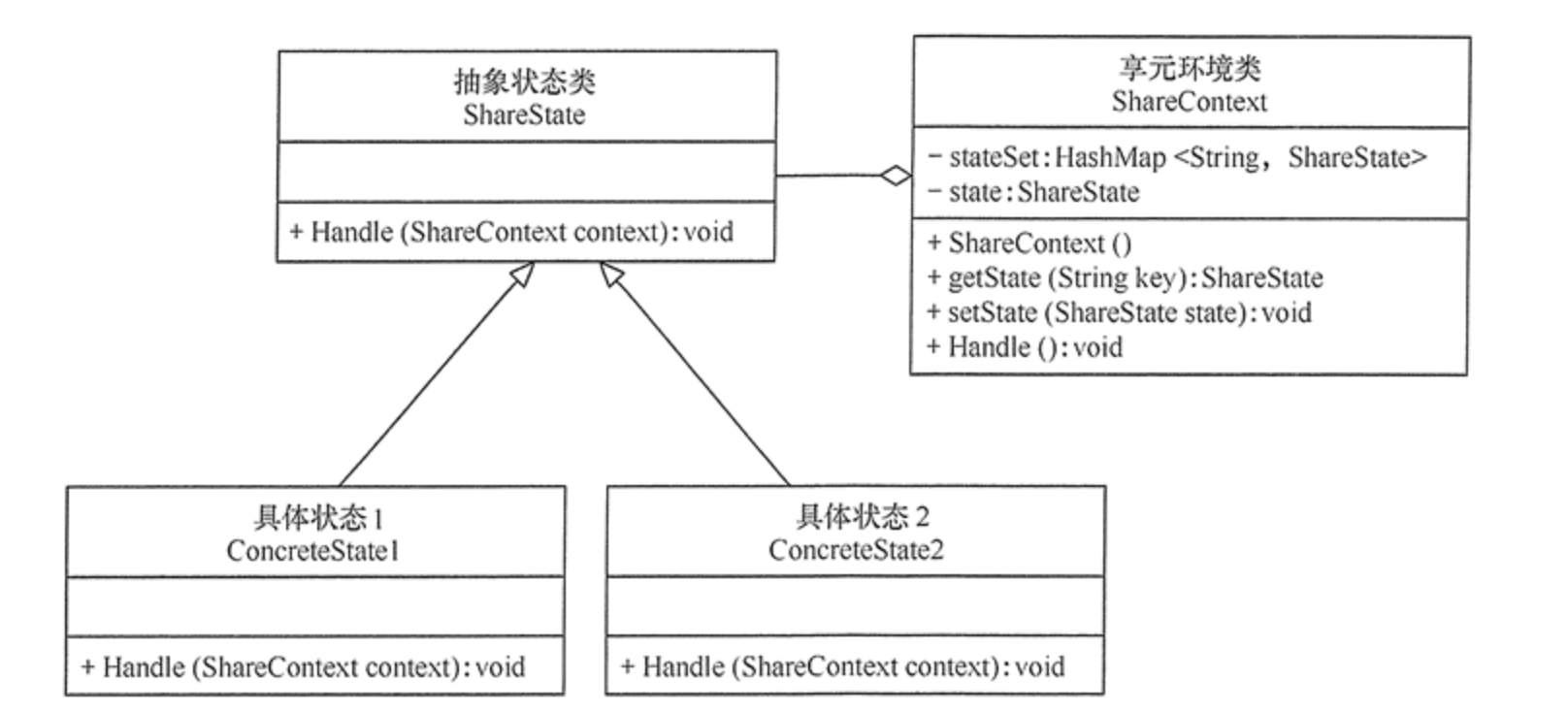 在有些情况下,可能有多个环境对象需要共享一组状态,这时需要引入享元模式,将这些具体状态对象放在集合中供程序共享。