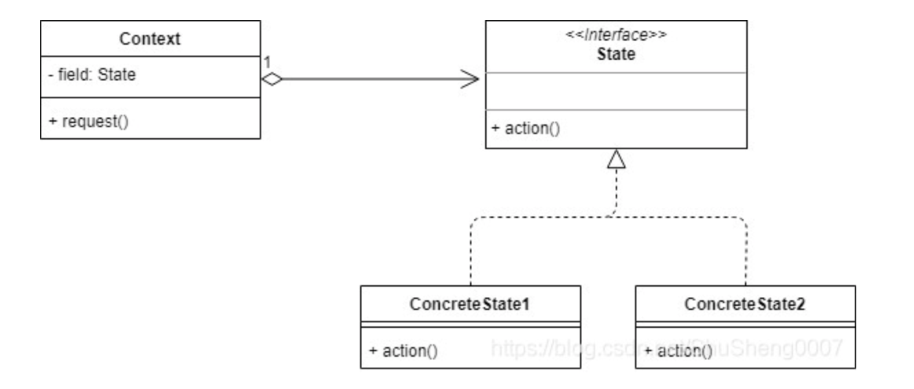 一个对象的行为取决于它的状态,并且它在运行时根据状态改变它的行为。