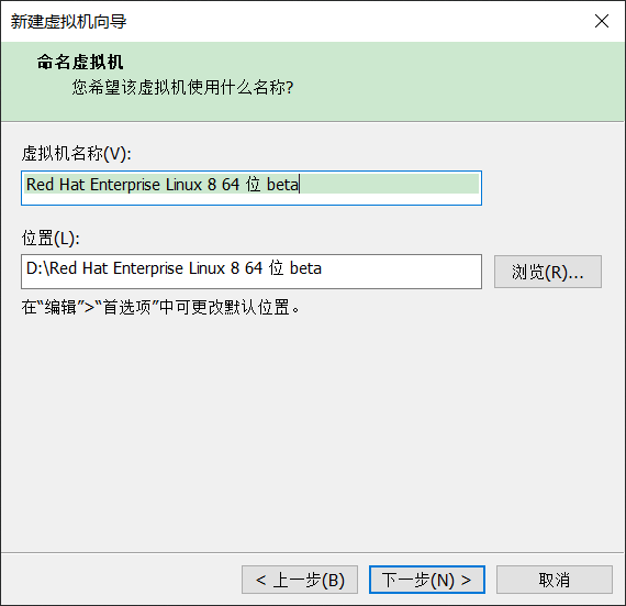 VMware Workstation 15 Pro的Linux版本中已经新增了【Red Hat Enterprise Linux 8 64 位】选项,选择该选项即可