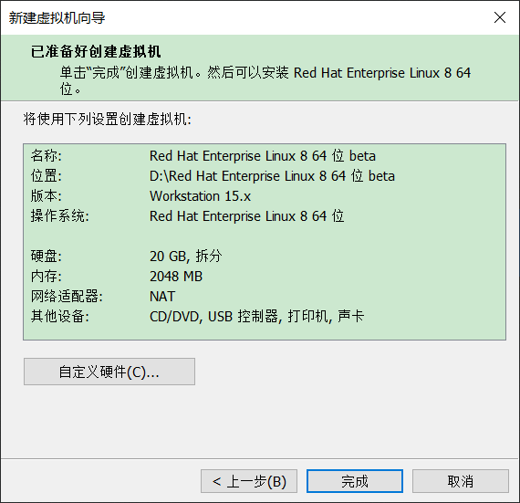 先安装RHEL-8.0虚拟机,再导入镜像。