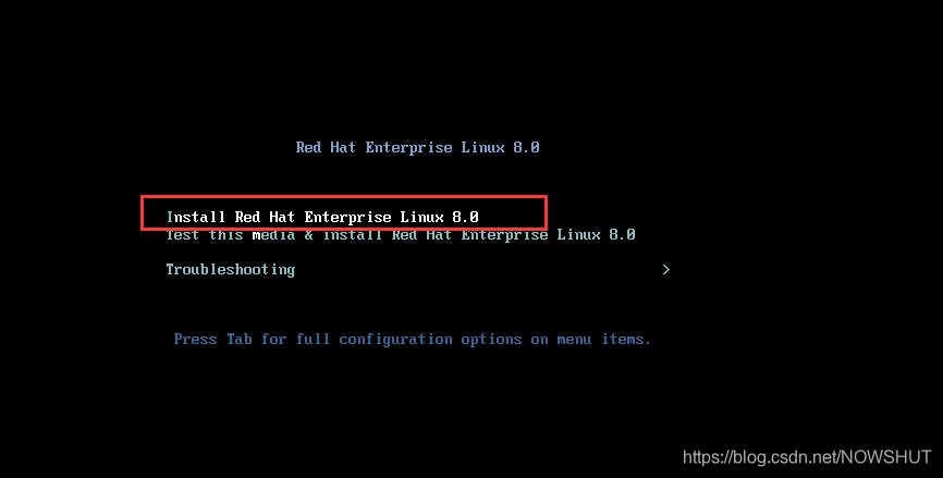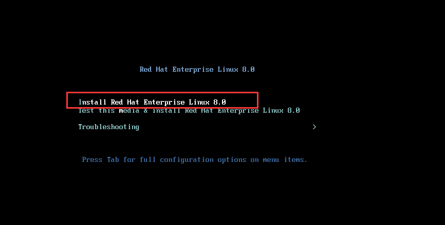 1.选择【install Red Hat Enterprise Linux 8.0】