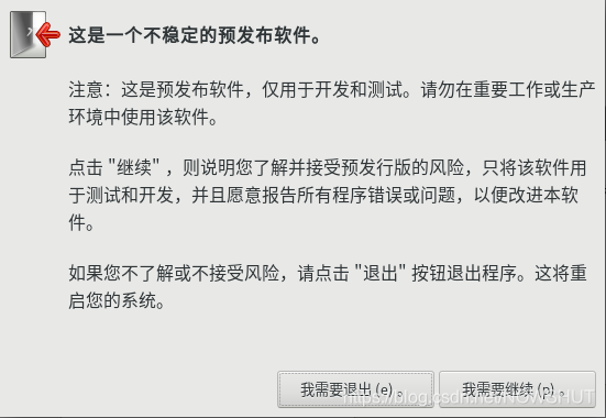 3.由于现在的版本是测试版,所以仅用于开发和测试,点击【我需要继续(p)】