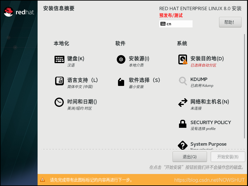 四.启动Red Hat Enterprise Linux 8 64 位虚拟机,安装镜像步骤