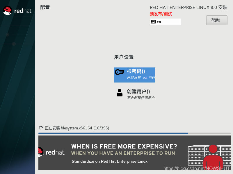 5.设置root密码,等待系统安装完成
