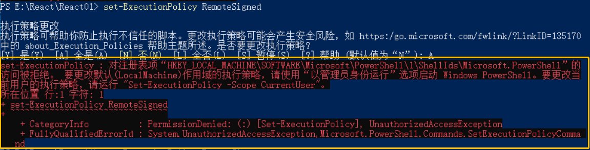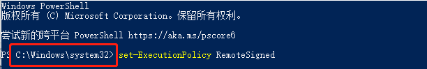 set-ExecutionPolicy RemoteSigned执行指令后,界面显示情况: