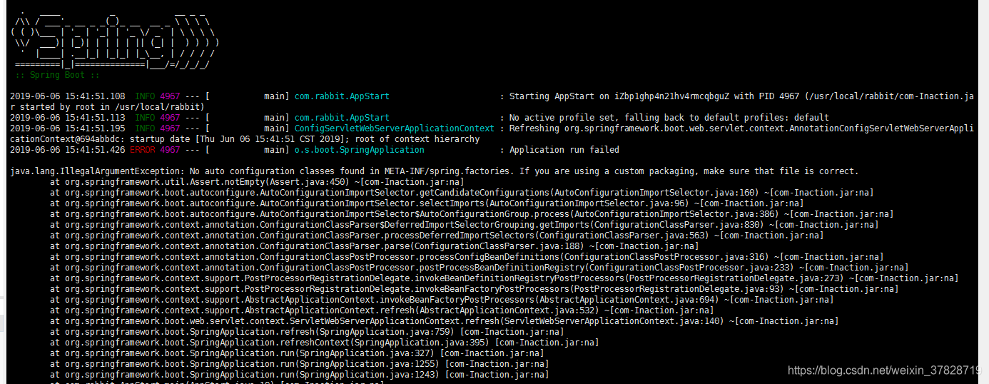 使用idea自带maven插件打包,在liunx服务器运行报错No auto configuration classes found in META-INF/spring.factories. If you are using a custom packaging, make sure that file is correct.;