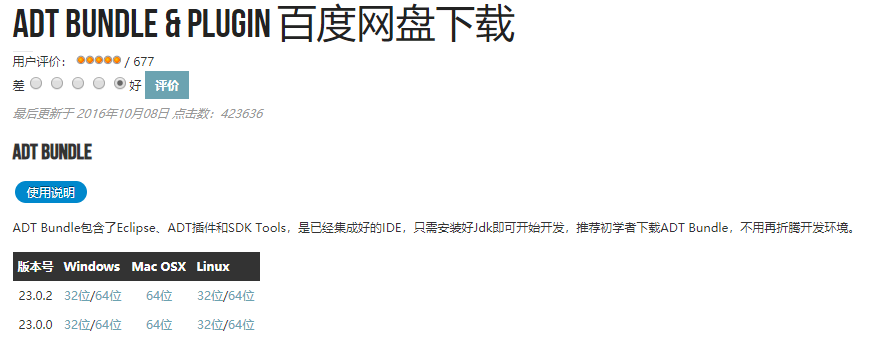 百度网盘下载,选择对应电脑版本的地址下载(用ADT Bundle 的看到这就可以了)