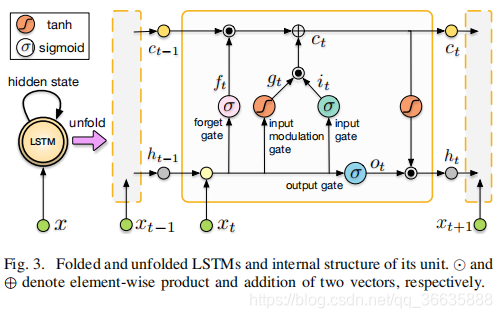 LSTM神经元的输入有三部分:当前网络的输入Xt,上一时刻的输出ht-1、上一时刻的单元状态Ct-1