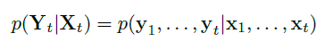 将系统看成条件概率模型:xt发生的条件下Yt发生的概率