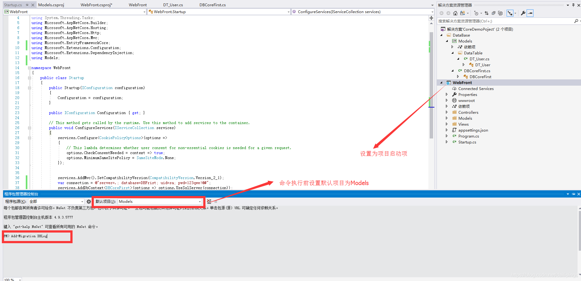 1:然后我们在设置一下项目启动项:设置WebFront为项目启动项