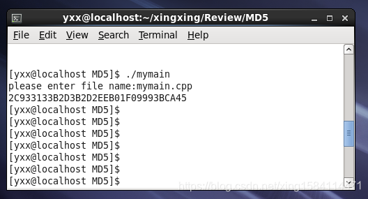 我们以一个wrold文档为例,新建一个xx.docx文件,然后在Linux下可以使用命令md5sum xx.docx计算md5值 -》835741aba850778a5b06bfd57f55c98c 。然后我在复制了一下这个文件,并将文件名改为yy.docx,然后重复上面的命令去计算这个新文件的md5值,然后得到的是相同的结果,文件的md5值是我在我们一个项目“文件传输”中用到的,一开始用这个只知道是用来判断两个文件的内容是否相同,用的是老师给的一个借口,项目写完已经很久了,这个文件的md5值是最近在面试的时候被面试官问到了,所以现在回过来看一看这个,其实这个是用来做加密的,我也不太了解,是在网上看的,关于机密什么的就先不说了,先来看看他是怎么在项目中用代码实现的把!