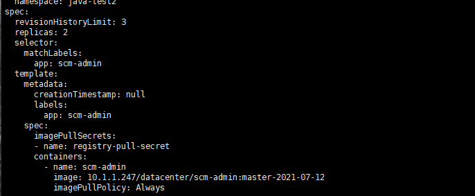 [root@k8s-master-61 ~]# kubectl rollout history deployment/scm-admin -n java-test2 --revision=2