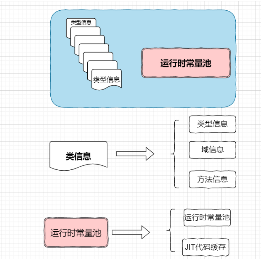 方法区(Method Area) 与Java堆一样,是各个线程共享的内存区域,它用于存储已被虚拟机加载的类型信息、常量、静态变量、即时编译器编译后的代码缓存等数据。