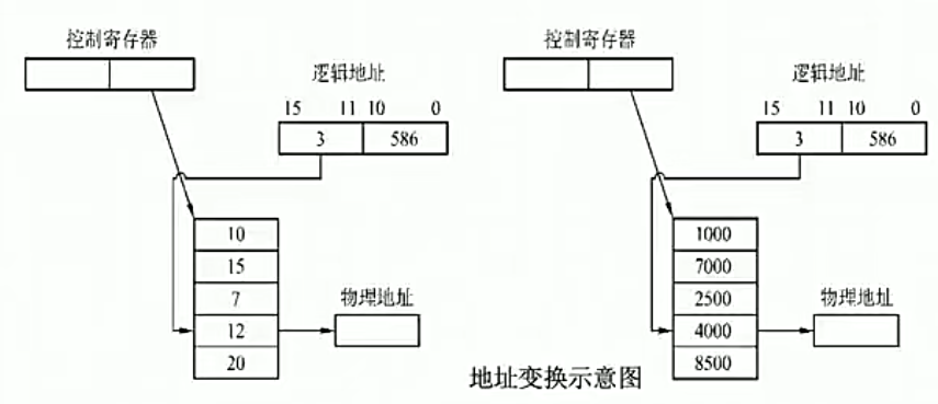 如果左边是段式存储管理,3对应的段号是12,再加上他的段内偏移量586,都598了;而段长由于没给出,我们通过看左图发现,当左图是段式存储管理的时候,12~598都应该是3号段的内容,可是1号段和4号段也在3号段里面(从上到下给段表项排序0,1,2,3,4),所以矛盾了撒,故左图是分页存储管理