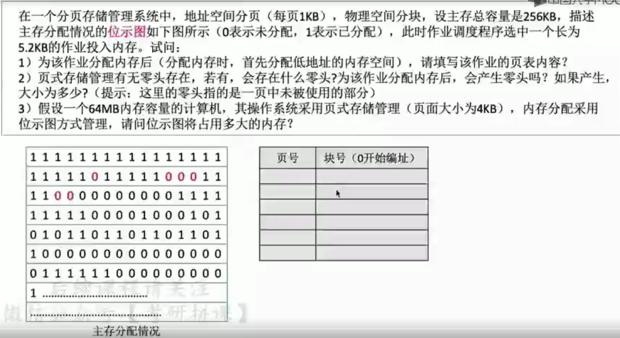 内存容量为64MB,页面大小为4KB,则内存一共可以分为16*2^10个页面,位示图又是表示这些页面的,故位示图需要