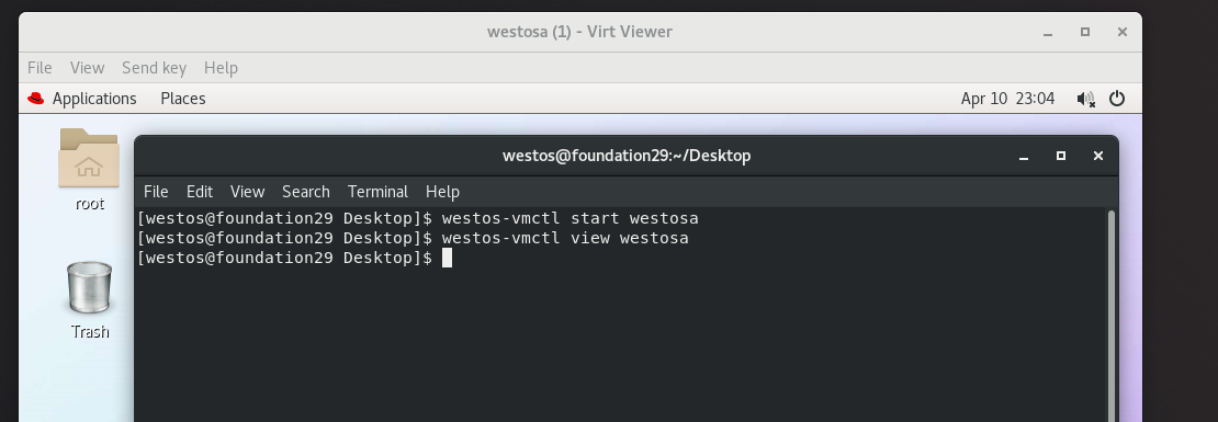 [root@foundation29 Desktop]# westos-vmctl start westosa 打开