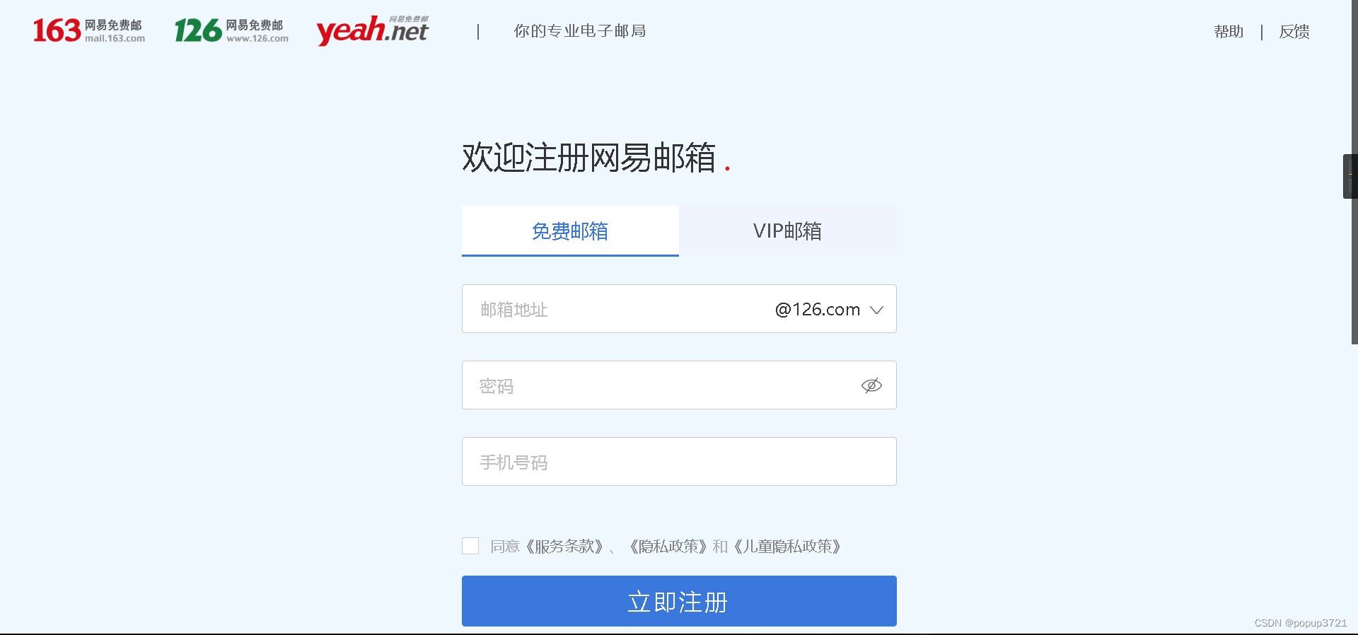 注册 163邮箱或126邮箱