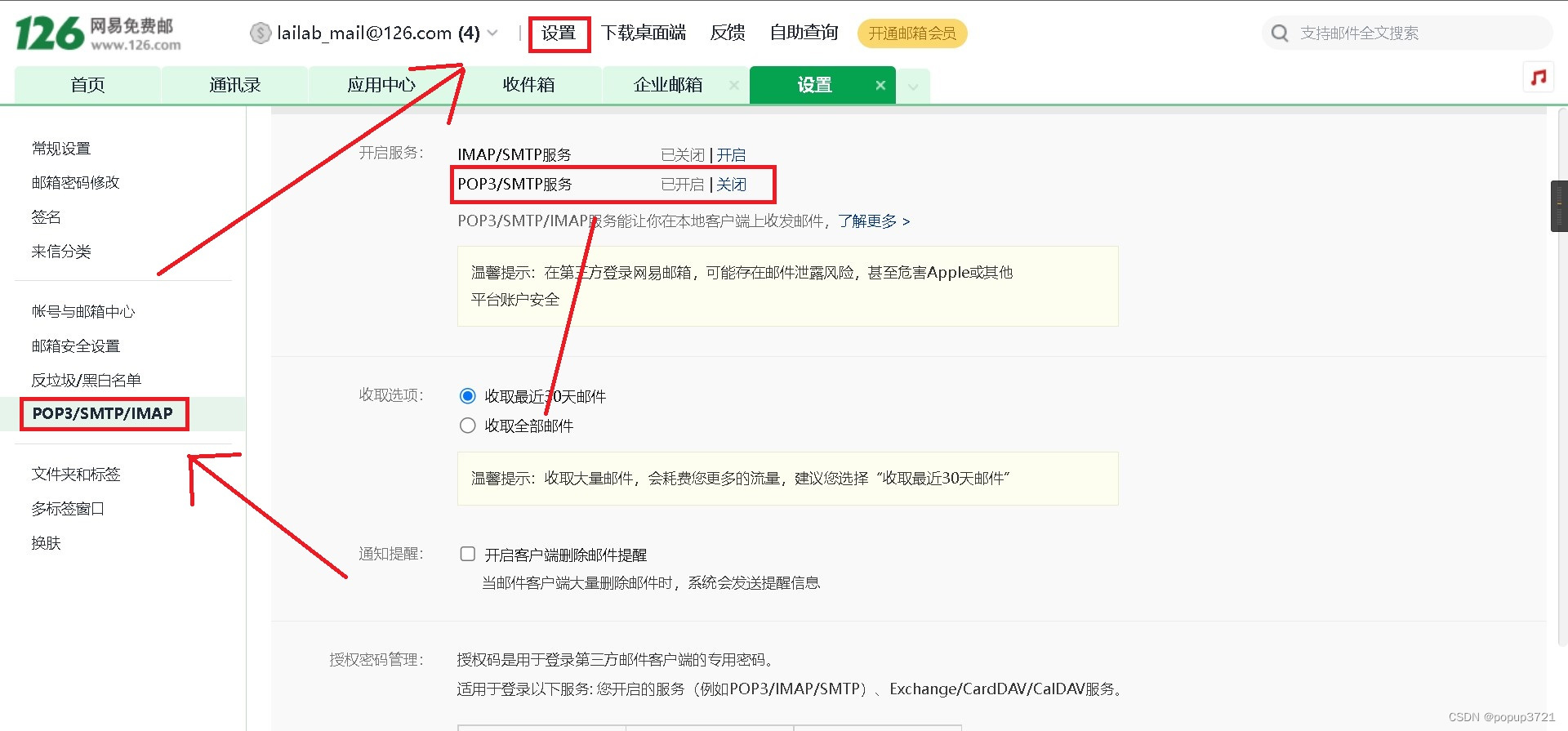 2、登录账号,开启 smtp