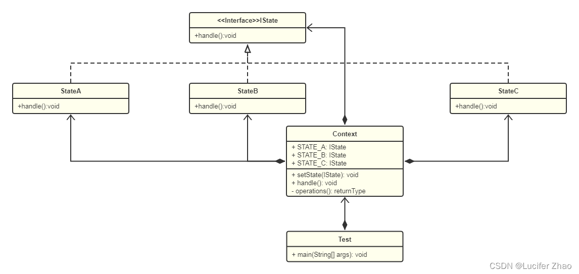 状态模式(State Pattern)又称状态机模式,是允许对象在内部状态发生改变时改变他的的行为,类的行为由状态决定,不同的状态有着不同的行为,对象看起来好像修改了它的类。属于行为型模式。