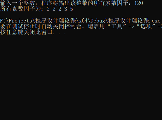 cout << "输入一个整数,程序将输出该整数的所有素数因子:";