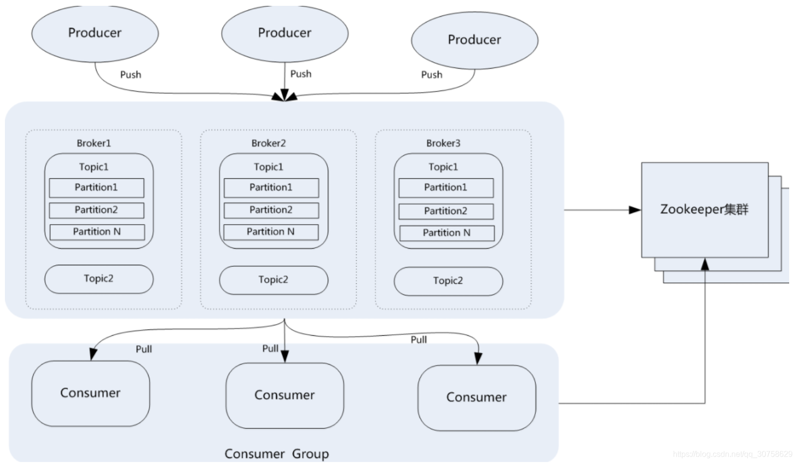 - Broker:一台kafka服务器就是一个broker。一个集群由多个broker组成
