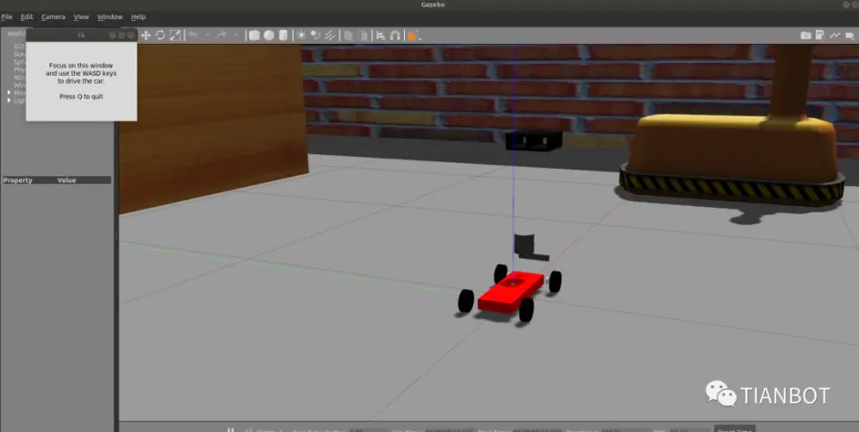 将鼠标点击到tk框上,此时可以用键盘wasd按键控制小车运动: