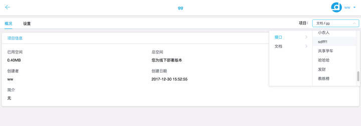 不仅如此,DOClever项目文档的强大之处在可以和接口很好的融合,我们通过快速切换栏切换到我们刚才插入的那个接口所在的接口项目下。