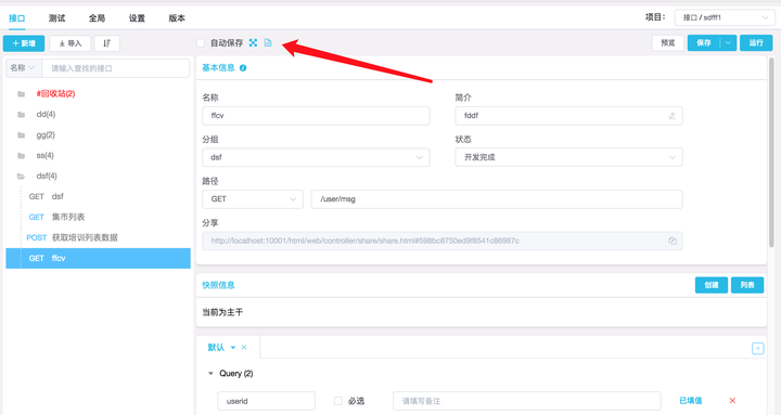 OK!我们点击保存,在预览区域便可以看见我们的接口链接了,点击该链接,便会出现接口的详情页。