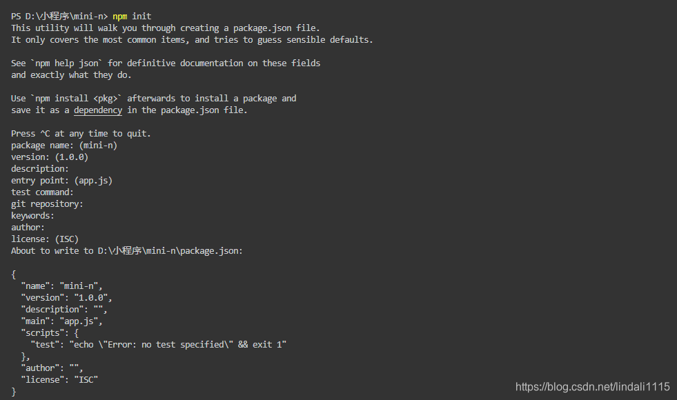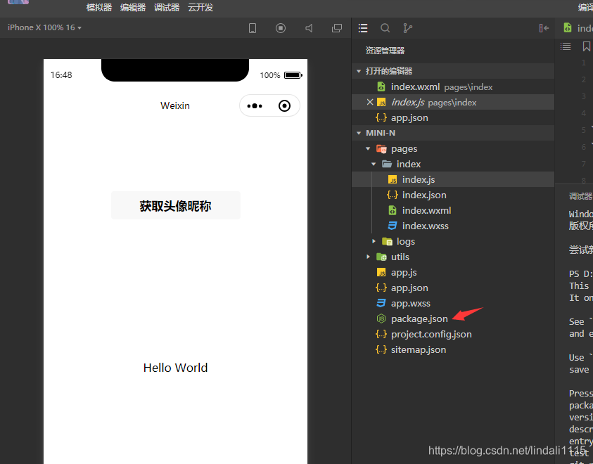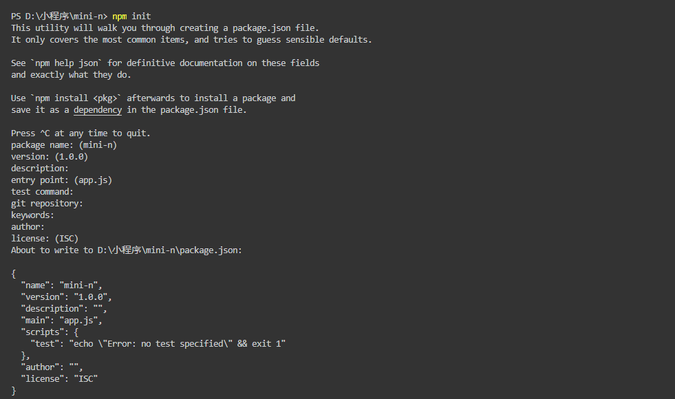 2.在小程序根目录内,初始化npm,初始化后的文件会多一个package.json