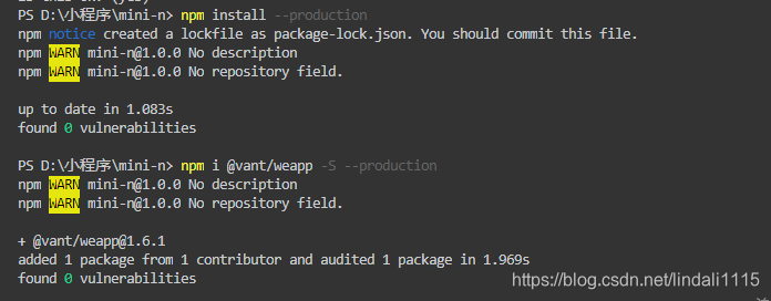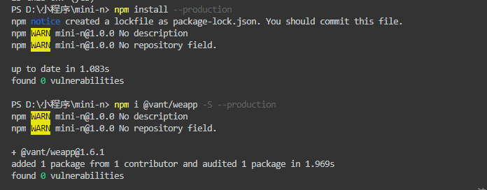 3. 在小程序中执行命令安装 npm 包 (这边安装的是vant)