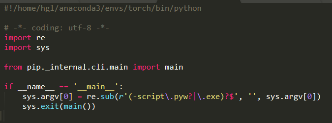 随便打开一个pip文件,发现它其实是一个Python文件,我们要做的只需要把下面这个改成对应环境路径即可,这样它会调用对应版本的Python进行编译了。
