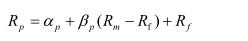 其中,Rp 为证券组合的期望收益率,Rf为无风险收益率,Rm为市场平均收益率,βp为该证券的相对风险系数, ap则为该证券组合的阿尔法收益。