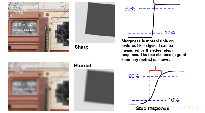 清晰度(sharpness)在边缘等特征上最为明显。它可以通过边缘(阶跃)响应来测量。