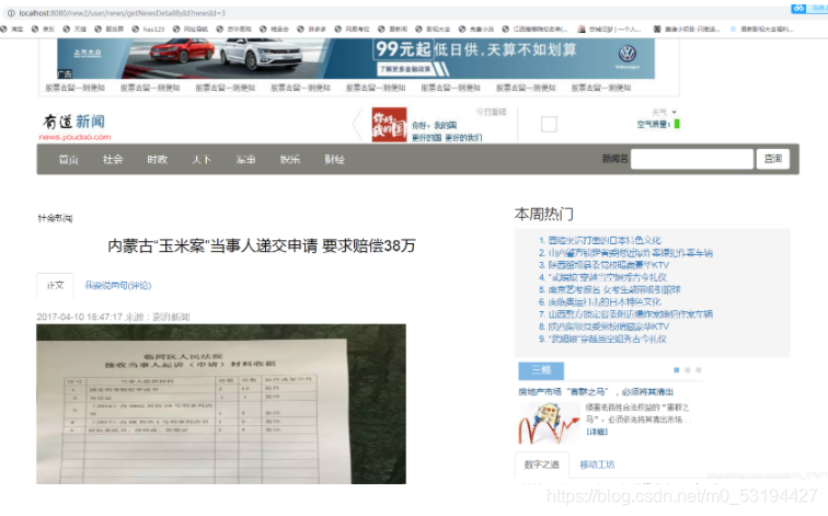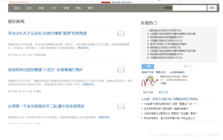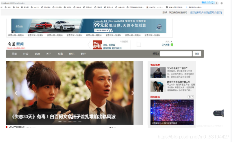 前端部分拥有新闻管理系统首页推荐面,新闻推荐页面、新闻详情页面,(主要是几个图片和文字对于新闻的描述)等等。页头部分为导航菜单,进入后台。内容部分多为文字介绍,部分插入图片。
